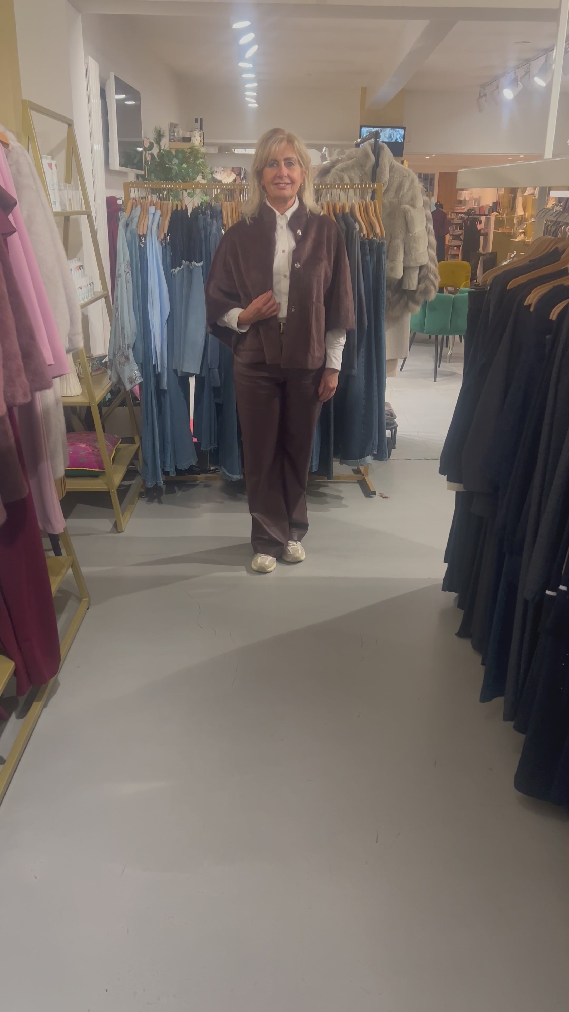 Wikkel jezelf in pure luxe met deze prachtige faux-fur cape. Het zachte, weelderige materiaal voelt heerlijk comfortabel aan. De cape is voorzien van twee open voorzakken, een drukknoopsluiting aan de voorkant, korte mouwen en zijsplitten voor extra bewegingsvrijheid.