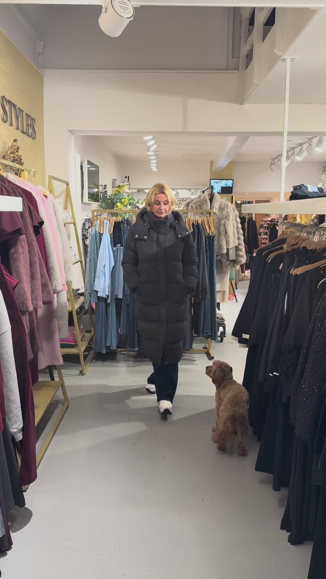 Val op met deze lange gewatteerde puffer coat met een prachtig gedetailleerde structuur. De jas heeft een hoge kraag, een capuchon met drukknoopsluiting en trekkoord, en een sluiting met zowel rits als drukknopen aan de voorkant. De zijzakken zorgen voor extra gemak en warmte tijdens koude dagen.