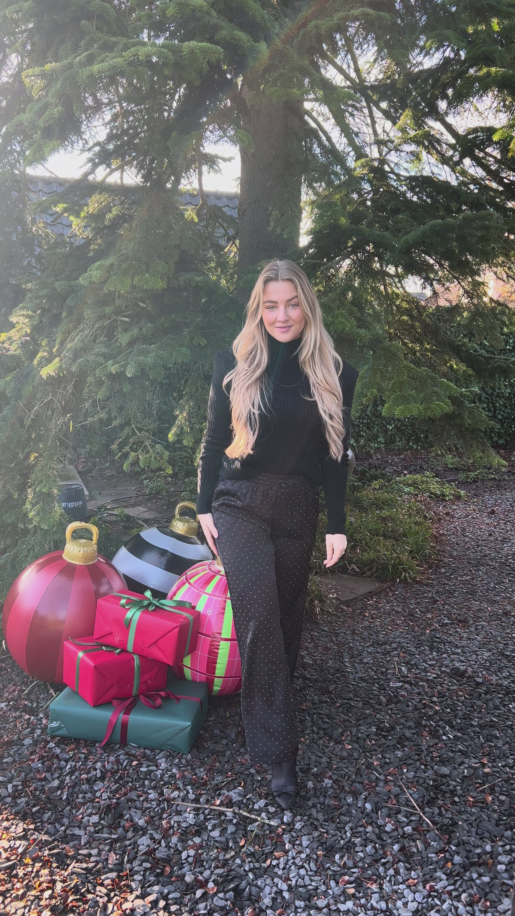 Deze bijpassende zwarte broek maakt je outfit compleet met een stijlvolle en moderne uitstraling. De subtiele studdetails geven een speelse, edgy touch, terwijl de comfortabele pasvorm ervoor zorgt dat de broek mooi aansluit en elegant valt. Perfect om te combineren met de Nell top voor een krachtige, gecoördineerde look – zowel feestelijk als fashionable voor elke dag.